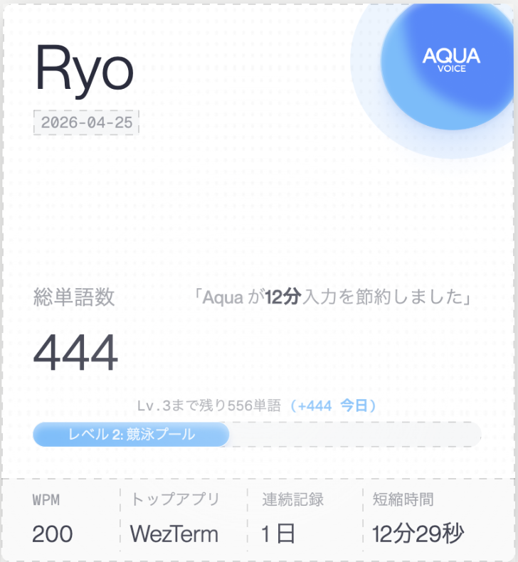 いくつか候補があったけど、Aqua Voiceが一番良さそう。コスト的にもまだありかなという感じがしていて、Aqua Voiceを使ってみている。